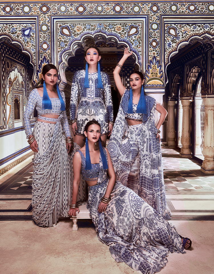 Electric Blue Embellished Dhoti Skirt Saree Set