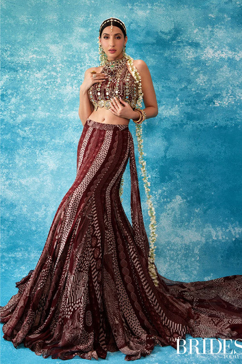 Metallic Rust Embellished Mermaid Skirt Saree Set