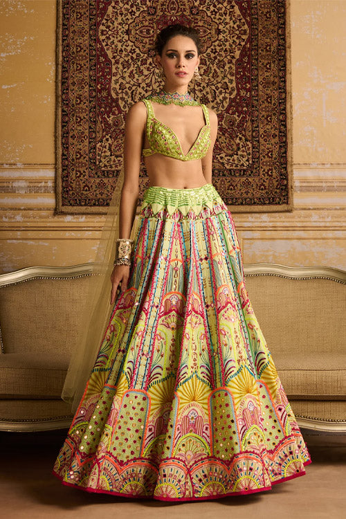 Metallic Gold Embellished Mirrorwork Lehenga Set