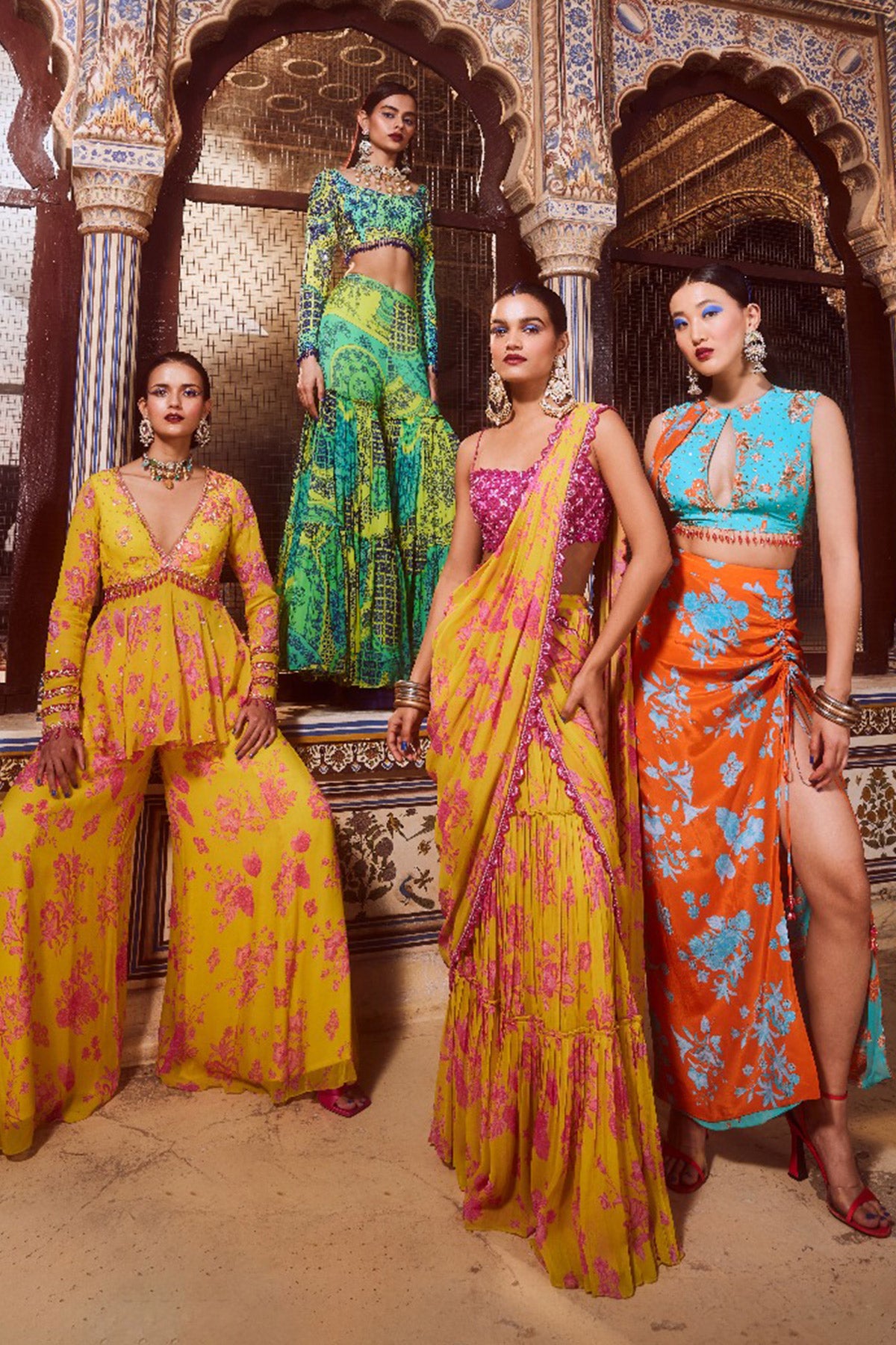 Mango Yellow Floral Print & Highlighted Peplum With Sharara Pants