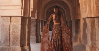 Caramel Brown Fully Embroidered Mermaid Trailskirt Set